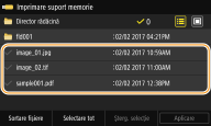 Dacă sunt combinate tipuri de fişiere, selectaţi <Fişiere JPEG/TIFF> sau <Fişiere PDF>.