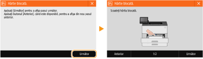 Când scoateţi hârtia blocată nu opriţi aparatulDacă opriţi aparatul se şterg informaţiile care sunt imprimate.