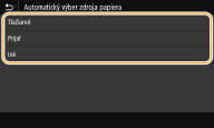 Vyberte položku <Automatický výber zdroja papiera>/<Zap./vyp. autom. výber zásuvky>.