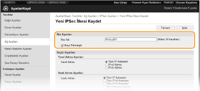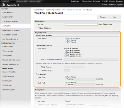 Uzak Kullanıcı Arabiriminden makineyi ayarlarken gerçekleştirilecek temel işlemler hakkında bilgi için bkz. Uzak Kullanıcı Arabiriminden Menü Seçeneklerini Ayarlama.