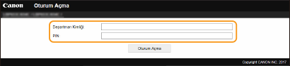 Uygun Kimliği (ID) [Departman Kimliği] öğesine ve PIN'i [PIN] öğesine girin.