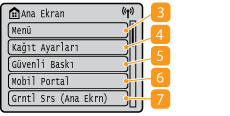 <Grntl Srs (Ana Ekrn)>Ana Ekran düğmelerinin görüntülenme sırasını değiştirmenizi sağlar. Ana Ekran'ı Özelleştirme