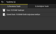 Seçilen öğenin geçerli durumunu görüntüler. Aşağıda <Yazdırma İşi> ekranı örnek olarak verilmiştir.