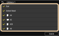 Görüntülenmesini istemediğiniz kağıt boyutlarına ait onay kutularını temizleyin.