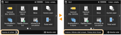 Es mostren missatges a la pantalla en situacions com ara quan no queda paper o quan s'ha arribat al final de la vida útil del cartutx de tòner.