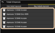 Si <Mostrar registre de treballs> està establert en <Desactivat>, no podeu comprovar els registres d'impressió. <Mostrar registre de treballs>
