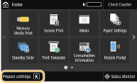 Якщо це повідомлення відображається під час отримання інтернет-факсу, апарат не виконує друк, щоб уникнути нечіткого відбитка. Щоб продовжити друк документів, навіть коли тонера залишається дуже мало, виберіть для параметра <Continue Print. When Cart. Low>/<Continue Print. When Amount in Cart. Low> значення <On>. <Continue Print. When Cart. Low>/<Continue Print. When Amount in Cart. Low>