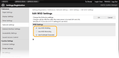 Установіть прапорець для друку через WSD. Якщо друк WSD не використовується, зніміть прапорець. [Use WSD Browsing]