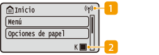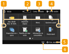 Cantidad restante de tóner en los cartuchosMuestra la cantidad de tóner restante en los cartuchos por fases. Esta información está oculta cuando la pantalla Inicio está activa.