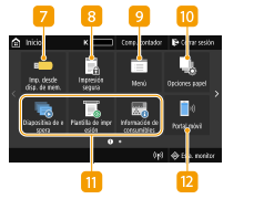 <Opc. de pant. de inicio>Permite cambiar el orden en el que se muestran los botones de la pantalla Inicio. Personalización de la pantalla Inicio