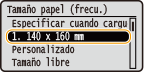 Puede registrar hasta tres tamaños de papel personalizados que utilice con frecuencia.
