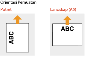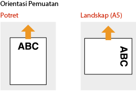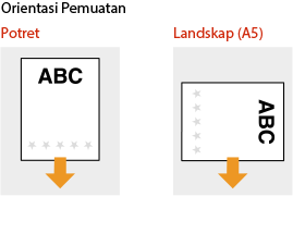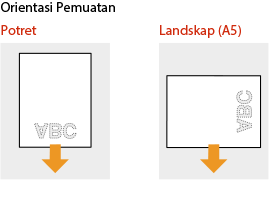 Muatkan kertas dengan muka berlogo depan (muka untuk mencetak halaman pertama dokumen) menghadap ke atas.