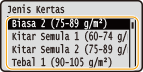 Pada model LCD hitam dan putih, teruskan memilih jenis kertas.