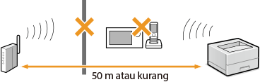 Adakah sebarang halangan seperti dinding di antara mesin dan penghala wayarles?