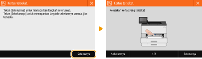 ) untuk memaparkan penyelesaian ringkas. Sukar untuk memahami prosedur pada paparan, lihat bahagian berikut untuk mengeluarkan kertas yang tersekat.
