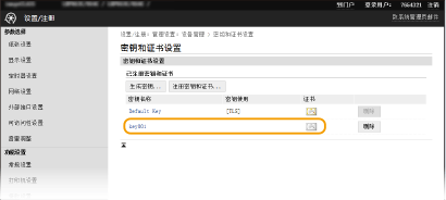 如果密钥和证书当前用于某种用途,如当 [密钥使用] 下显示“[TLS]”或“[IEEE 802.1X]”时,无法删除密钥和证书。在这种情况下,请禁用此功能或更换其他密钥和证书,然后再进行删除。