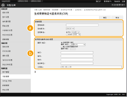 由于本机上生成的证书没有 CA 签名,因此根据与之通信的设备,可能会发生通信错误。要让证书颁发机构颁发带 CA 签名的证书,需要获得 CSR(证书签名请求)的数据,管理员可以从远程用户界面生成此数据。颁发证书时,会将其注册在密钥中,并生成 CSR。