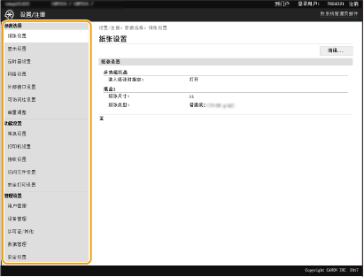 可通过使用远程用户界面更改多项机器设置。大多数设置也可在本机上设置,但是某些设置只可使用远程用户界面设置。本节介绍使用远程用户界面更改本机设置的基本流程。