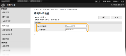 服务器消息区块(SMB)是用于网络中多个设备之间共享文件和打印机等资源的协议。需要用其将本机配置为 SMB 网络上的共享打印机。视网络而定,您可能需要设置 NetBIOS 名称和工作组名称。
