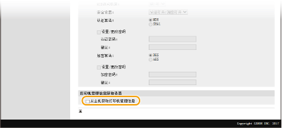 选择此复选框可启用通过 SNMP 监视本机的打印机管理信息。若要禁止监视打印机管理信息,请取消选中此复选框。