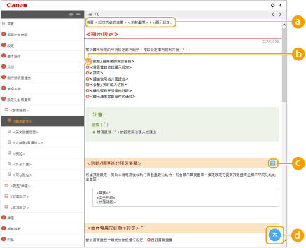 按一下可設定決定使用者指南顯示方式的參數,例如字元大小或版面配置。