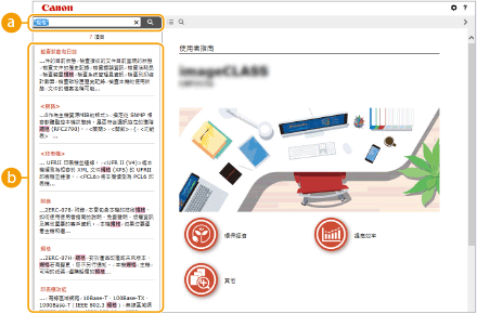 可顯示搜尋視窗。包含一個文字方塊,用於依關鍵字執行搜尋所需頁面。