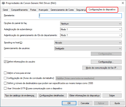 Na folha [Configurações do dispositivo], clique em [OK] ou [Aplicar].