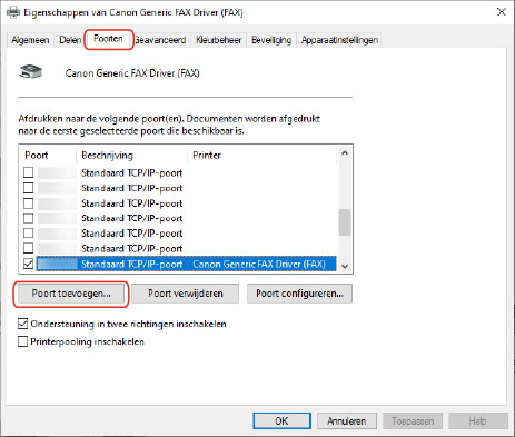 Open het tabblad [Poorten] → klik op [Poort toevoegen].