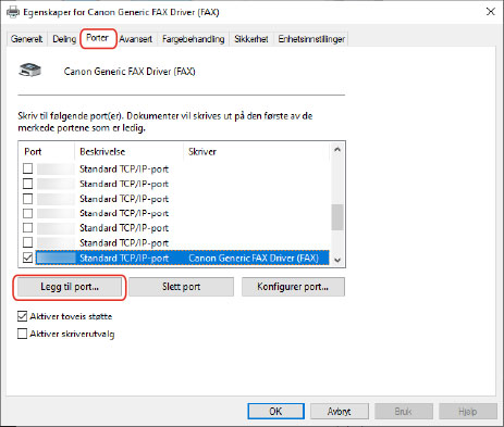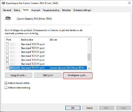 Dette forklarer prosedyren for å bytte porten som brukes av en enhet tilkoblet av et nettverk til en standard TCP/IP-port. Hvis du midlertidig tilordner en port til en enhet når du installerer driveren, kan du endre den til riktig port ved å følge denne prosedyren.