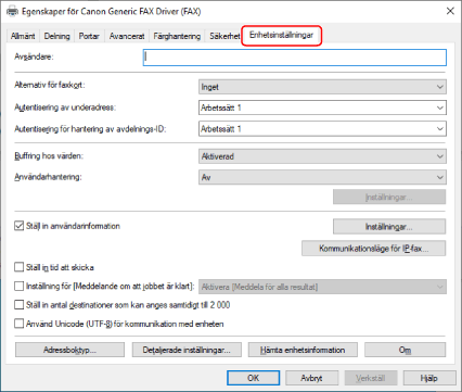 På fliken [Enhetsinställningar], klicka på [OK] eller [Verkställ].