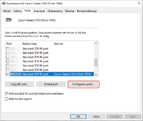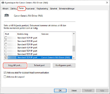 Visa fliken [Portar] → klicka på [Lägg till port].