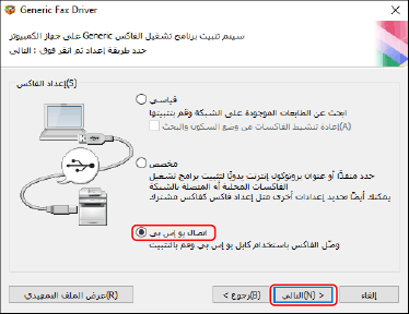 قم بتحديد [اتصال يو إس بي] ← انقر [التالي].