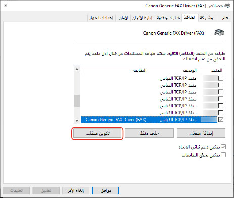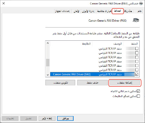 هذا يشرح الإجراء لتغيير المنفذ المستخدم بواسطة جهاز متصل بواسطة شبكة بمنفذ TCP/IP قياسي. إذا قمت بضبط منفذ للجهاز مؤقتا عند تثبيت برنامج التشغيل، يمكنك تغييره إلى المنفذ الصحيح باتباع هذا الإجراء.