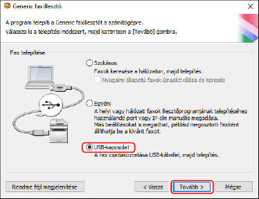 Telepítés az [USB-kapcsolat] opció kiválasztásával