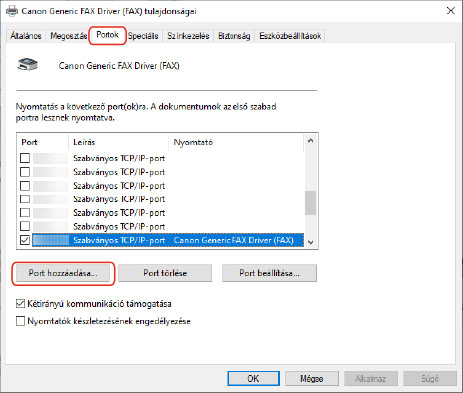 Jelenítse meg az [Portok] lapot → kattintson a [Port hozzáadása] elemre.