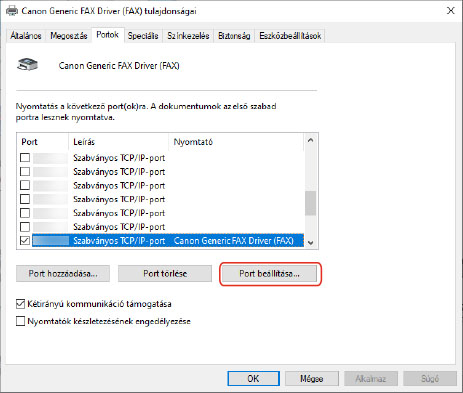 A [Port neve] mezőt a rendszer automatikusan kitölti. Szükség esetén módosítsa a port nevét.