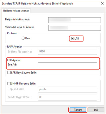 (1) [Protokol] için [LPR] öğesini seçin → [LPR Ayarları] alanında [Sıra Adı] için bir yazdırma sırası belirtin.