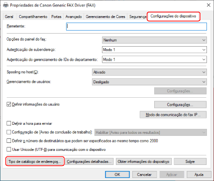 Exiba a guia [Configurações do dispositivo] → clique em [Tipo de catálogo de endereços].