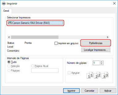 Dependendo do aplicativo, [Preferências] pode ser chamada de "Propriedades da impressora" ou "Propriedades".