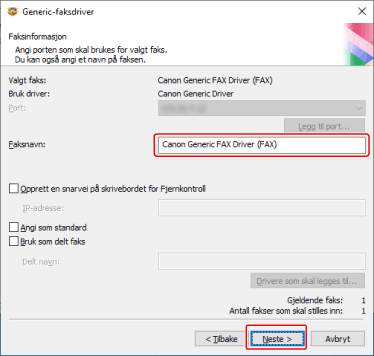 Endre [Faksnavn] om nødvendig → klikk på [Neste].