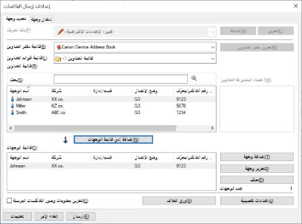 قم بتحديد وجهة من شاشة [إعدادات إرسال الفاكسات] المعروضة.
