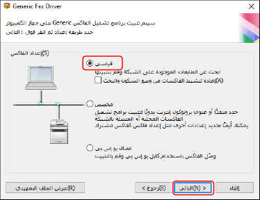 [عملية تثبيت برنامج تشغيل الفاكس]: اختر هذا عند الضرورة إذا تم تثبيت مثبت برنامج التشغيل بالفعل.