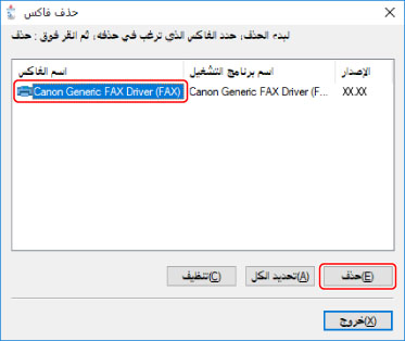 [تنظيف]: انقر هنا بشكل متزامن لحذف جميع الملفات ومعلومات السجلات المتعلقة بكل برامج التشغيل المعروضة في القائمة، وليس برنامج التشغيل المختار فقط. انقر [حذف] لإجراء إلغاء التثبيت العادي لبرنامج التشغيل.
