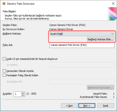 Bir ağ yazıcısı bağlantı noktası seçtiyseniz, [Faks Adı] ve [Paylaşılan Faks Olarak Kullan] öğelerini ayarlayamazsınız.