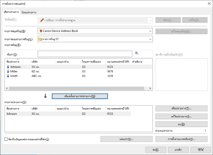 ระบุปลายทางจากหน้าจอ [การตั้งค่าการส่งแฟกซ์] ที่ปรากฏ