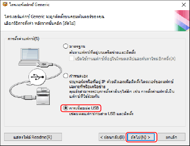เลือก [การเชื่อมต่อ USB] → คลิก [ถัดไป]