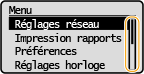 Vous pouvez modifier un grand nombre de réglages relatifs à l'affichage tels que la vitesse de défilement ou la langue d'affichage : <Réglages d'affichage> |