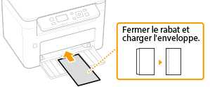Chargez les enveloppes de manière à ce que le rabat soit vers la gauche de l'appareil comme illustré. |