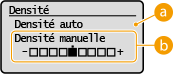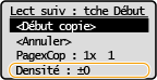 .![]() | Vous pouvez ajuster la densité de la copie si le texte ou les images d'un original sont trop clairs ou trop foncés. Vous pouvez également régler automatiquement une densité optimale pour un original. |