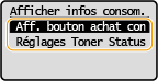 <Aff. bouton achat consom. (IU distante)> <Désactivé> <Activé>  <Réglages Toner Status> <Désactivé> <Activé>  <Aff. bouton achat> <Désactivé> <Activé>  |